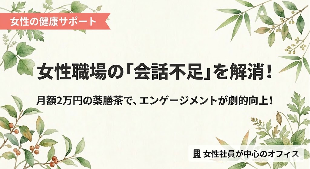 【導入事例】女性が多い職場の「会話不足」を解消!月額2万円の薬膳茶導入で、社員の笑顔とエンゲージメントが向上したケース